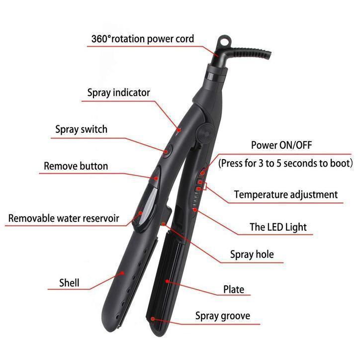 • Smart Features: High-end rubber matte surface for cozy holding, worldwide dual voltage appliance, removable water tank for easy refills, 60s auto shut off, 360 °swivel salon grade cord and lockable plates for traveling.